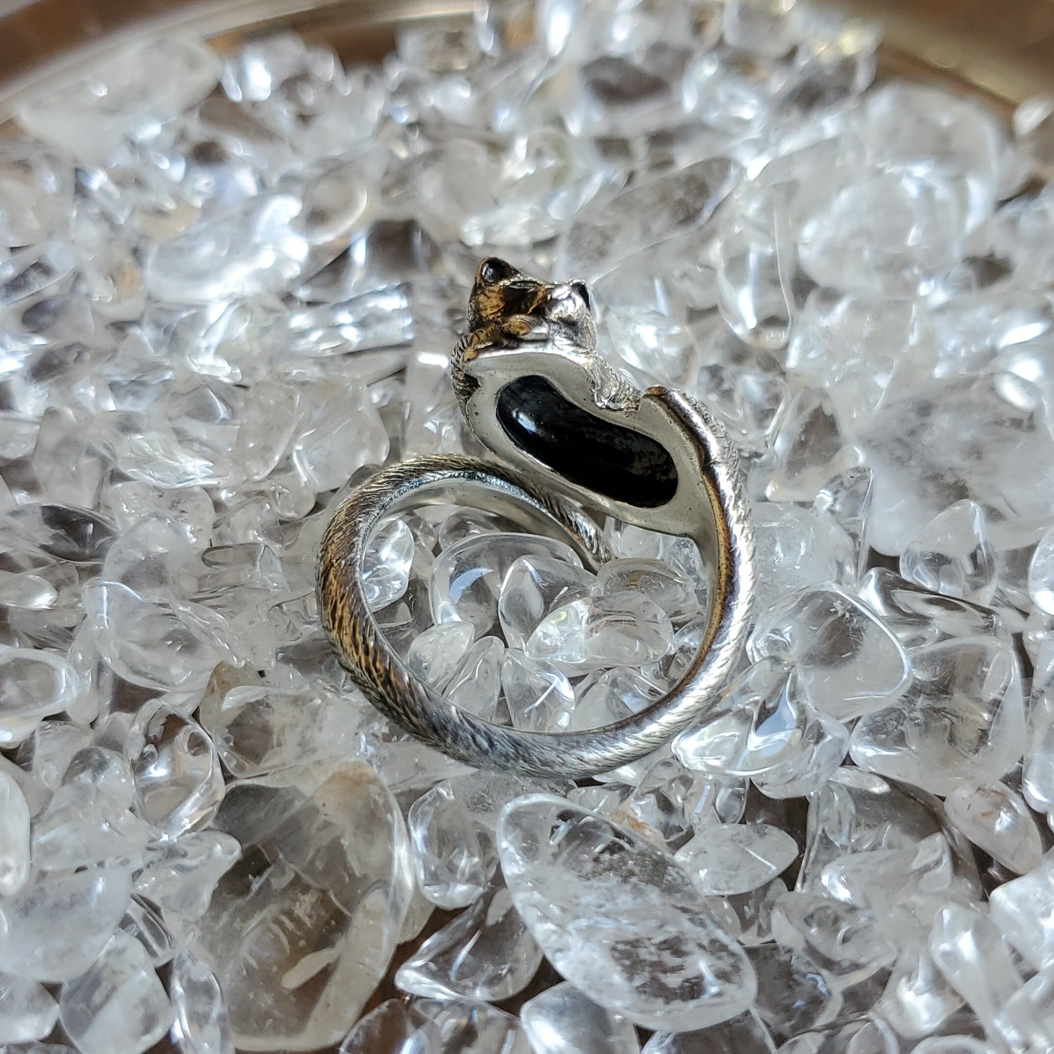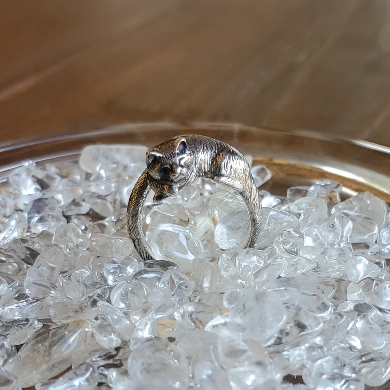 しっぽがリングの一部となり、指にくるっと巻きつく姿がとてもかわいい、